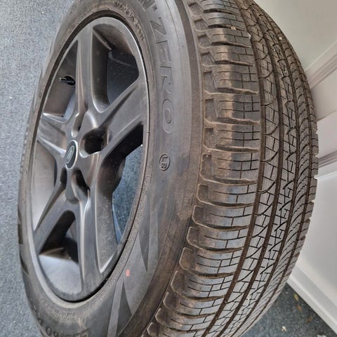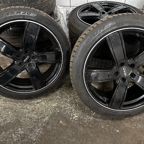 Et 29 foran på 8 1/2 tomm 245/35/20 og 9 1/2 tomm bak på 275/35/20 et 34 bak, Har kun rullet ca 150 km som nye koster 36000 nye i september 2024