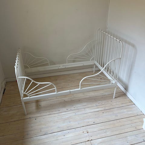 Sengen er nesten ikke brukt og i veldig god stand. Den er justerbar og kan forlenges etter hvert som barnet vokser – opptil 200 cm. Alle deler følger med, inkludert ribbebunn og madrass.