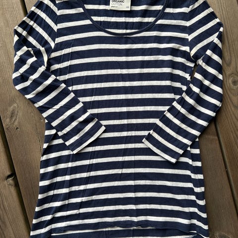 Deilig genser med sorte og hvite striper. Stor i størrelsen. Noe små nupper her og der etter bruk.