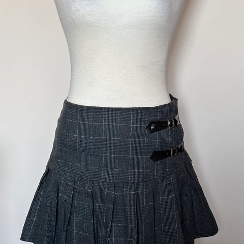 Svart skjørt fra HM. Hvite striper nederst. Størrelse 42. Ingen synlige merker eller slitasje.