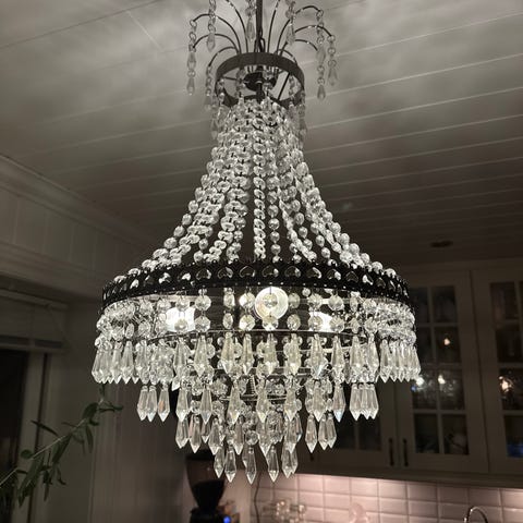 Selger en lysekrone.