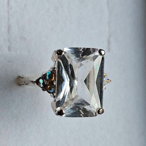 Gammel ring med blå stein