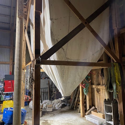 22m3. Det følger med skruer og motorer. Må demonteres og fraktes av kjøper.