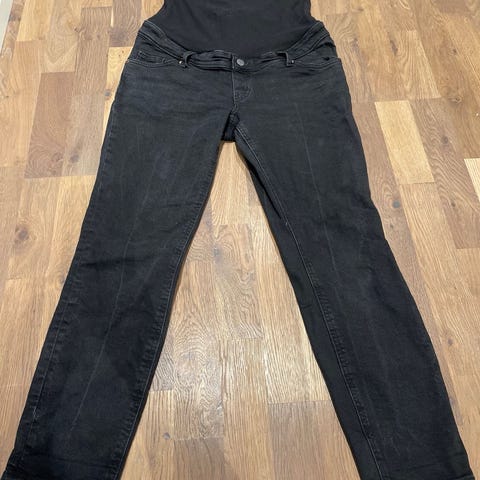 Pent brukt gravidbukse fra ASOS i denim med stretch. Stoffet består av 66 % bomull, 20 % polyester, 11 % viskose og 3 % elastan.