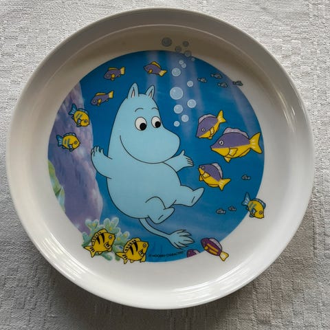 Veldig lite brukt Mummi tallerken.