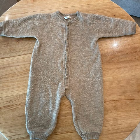 Tjukk ulldress og tjukke ulltøfler brukt i noen måneder av et barn. Ingen anmerkninger, men både dressen og tøflene har nupper. Ny pris 799 og 229.