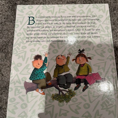 En levende og glad fortelling om 6-åringene Erlend, Stian og Tuva. De begynner på skolen, er engler i julespillet, blir kjent med en gammel sirkusdame, og ser kamelspor i snøen. Både på skolen og i kirka hører de fortellinger fra Bibelen. Boka er skrevet med tanke på dåpsopplæring for 6-åringer.