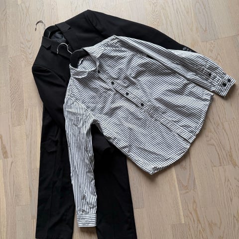 Som ny svart og hvit rutete langermet skjorte, 158-164