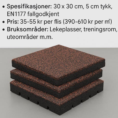 Søkeord: gummi, gummifliser, gummigulv, gummibelegg, terrassefliser, treningsgulv, treningsmatter, sportsfliser, treningsrom, hjemmegym, treningsstudio, industrigulv, gymgulv, lekeplass, klatrevegg