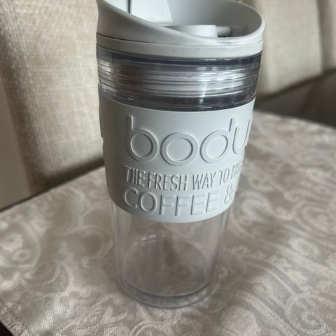 Stilig, praktisk reisekopp for varme og kalde drikker.