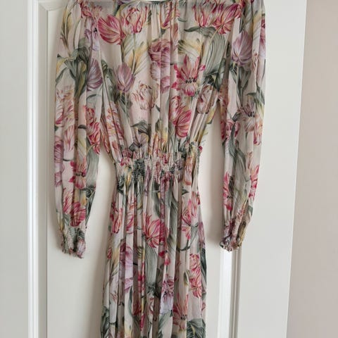 Selger rød, ubrukt blomsterkjole/sommerkjole fra Zara i str. S med prislappen på. Kjolen har en sidesplitt