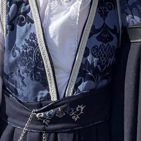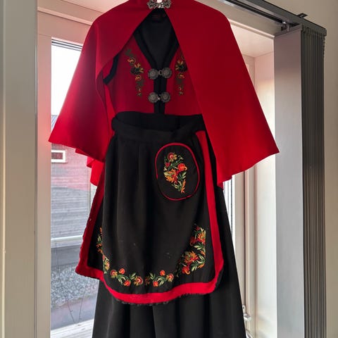 Veldig pent brukt Pascal festdrakt med fine detaljer og broderier selges med skjorte og Cape. Skjorten er fra en annen merket. Capen er fra Rosenberg men passer til festdrakten. Str er 164