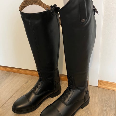 Selger nesten nye ridestøvler siden di ikke blir brukt mer. Støvlene er i str 40R, men har strikk i leggen så kan variere litt i størrelse rundt leggen.