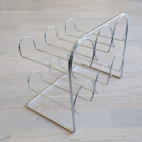 Hvit brødstativ i metall med emaljert overflate – elegant dansk design. Praktisk og dekorativ på kjøkkenet