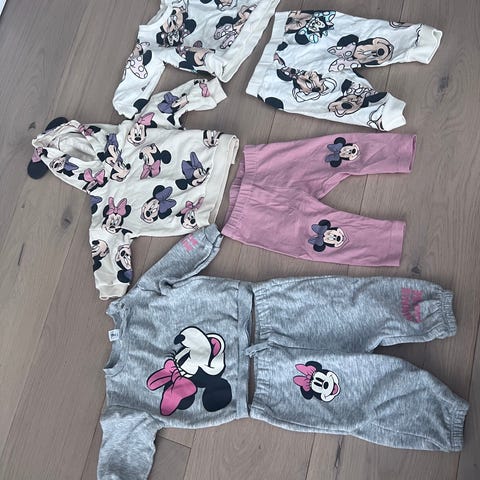 Pent Minnie Mus-sett med to bukser og en overdel. Str 74. Pent brukt.