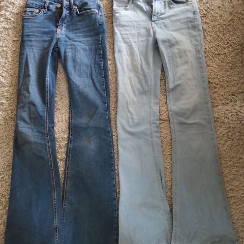 Buksen er i XS og genseren i S. Brukt sammen. Perfekt på sommeren