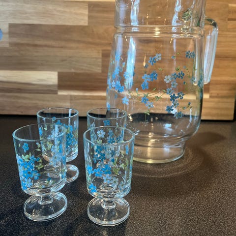 Store glass-mugge blå/hvit flora dekor