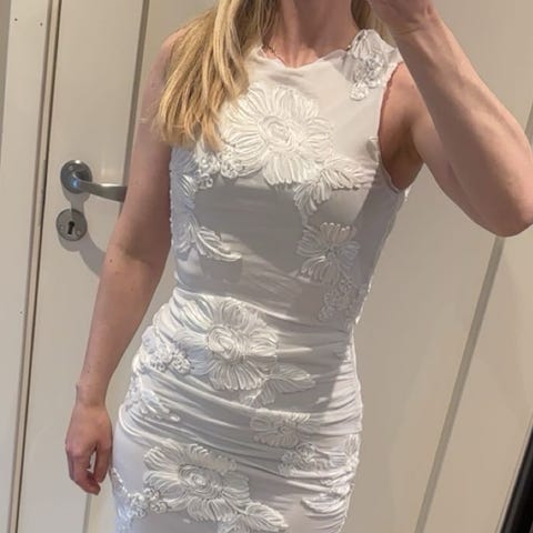 Plisse kjole fra pieces i fargen beige/champagne. Den er så og si helt lik byic Kelly kjolen, bare med en splitt på siden. Brukt 1 gang i bryllup.