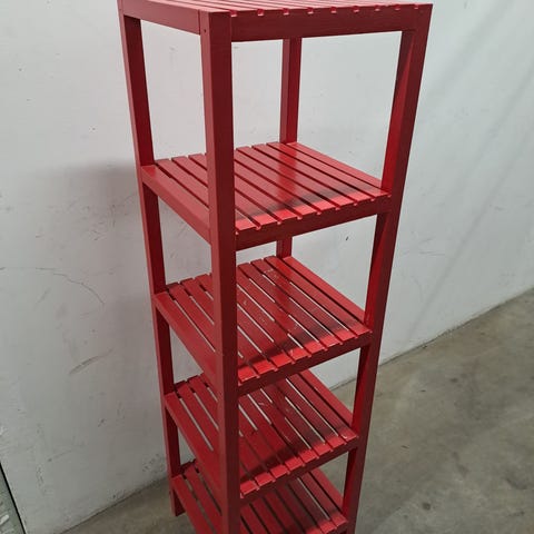 Brukt i sørlandshytte. Knagger under til feste av håndklær etc. Meget dekorativ og i nøytral farge.