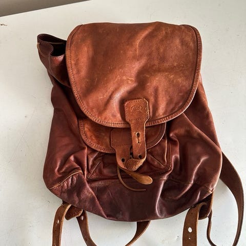 Stor skinnsekk håndlaget av den kjente skinnarbeideren Nils Lennart Westin fra Sverige