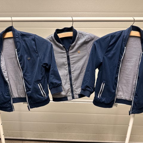 En løs tråd og en liten, nesten usynlig flekk, som ikke er forsøkt fjernet. Se bilder. (Med forbehold om at jeg kan ha oversett noe).