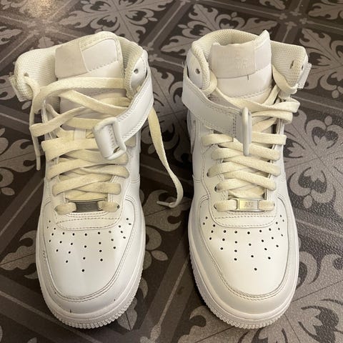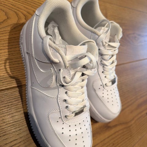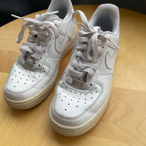 Hvite Nikesko i lær selges. Kun brukt en gang. Størrelse 38,5.