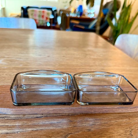 Fat i sotfarget glass produsert av Holmegaard selges pr stk.