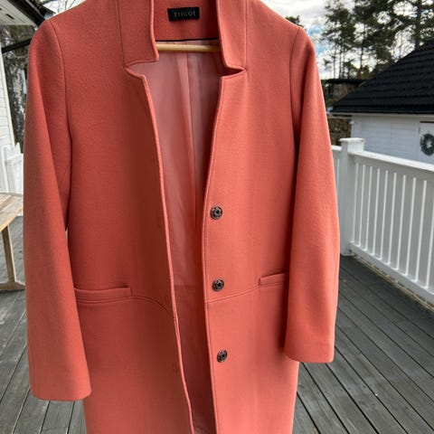 Pen ullkåpe fra Tricot i beige. Jakken har hatt en pelskrage , men den er borte. Jakken er fin uten.