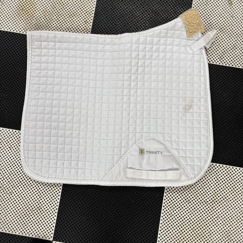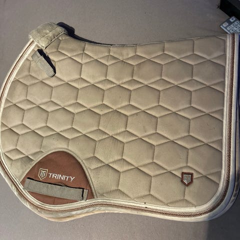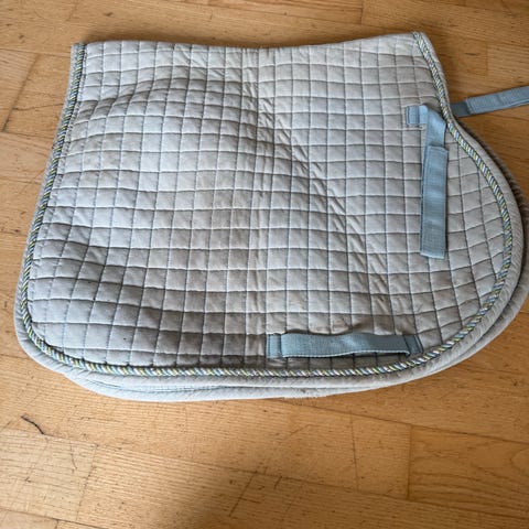 Fin Trinity sjabrak i beige med mørkeblå kant – selges for 25 kr