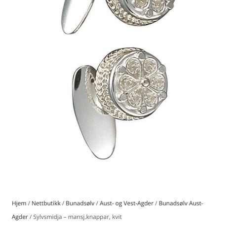 Selger et par skospenner i oksidert sølv, tilpasset bunadssko for Tromsbunad. Ytre mål er 40x30 mm, og innvendig åpning er 24x19 mm.