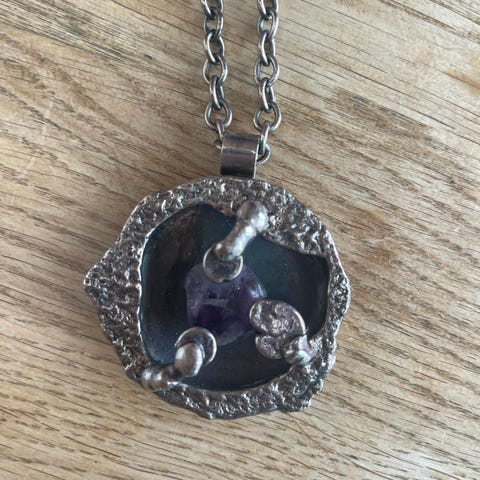 Selges nydelig halskjede med stort anheng med grønn stein.