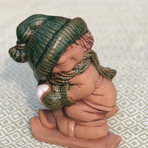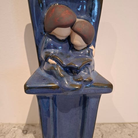 Selger denne flotte figuren frå JIE keramikk design / design Ewa Jarenskog. 20 cm høg og ca 8,5 cm i bredde øverst. Nederst ca 6 cm. Ca 4 cm djup nederst - ca 6 cm djup på det djupaste.. motivet er to barn som leser ei bok.