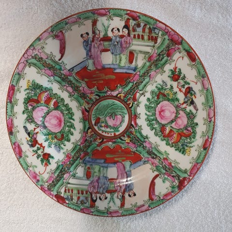 Håndmalt kinesisk fat. D 26cm. H 7cm. Ca. 100 år.