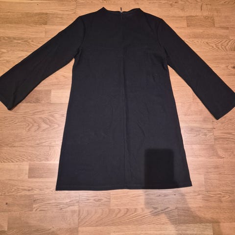 Selger en sort kjole som er perfekt til jobb. Gullknapper på skuldre og på front. Langermet og lengde rett over kneet. Fra merket Easy Wear.