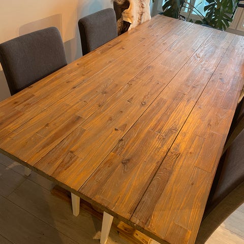 Har også spisebord og ileggsplater i same stil til sals, bilde 5 og 6 viser det. Spisebord (100x200cm) + to ileggsplater selges samla for 16.500, noko som er halv pris av nypris.