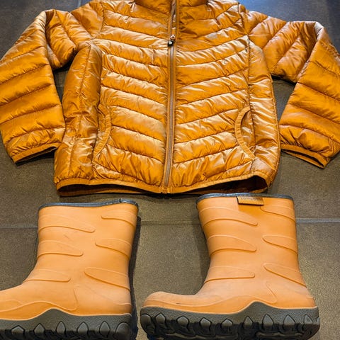 Både jakke og støvler kan prøves/ hentes på Gressvik, Fredrikstad eller sendes for kjøpers regning.