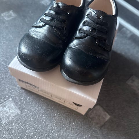 Skoene er pusset med svart skokrem.