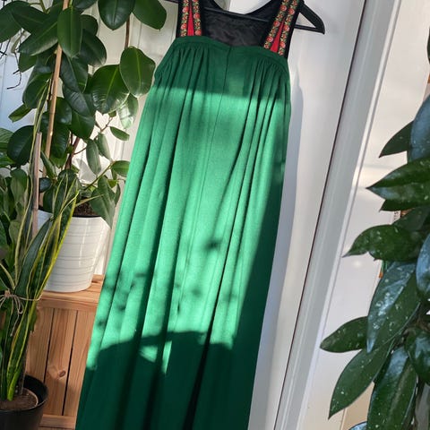 Koselig, pent brukt Hallingstakk selges. Brukt 1 gang av nåværende eier. Tidligere eier fortalte at den var sydd på Gol. Brukt av 13/14 år gammel jente. Den er 90 cm. rundt bringa og 113 cm lang (fra skulder). Kan selvfølgelig legges opp.
