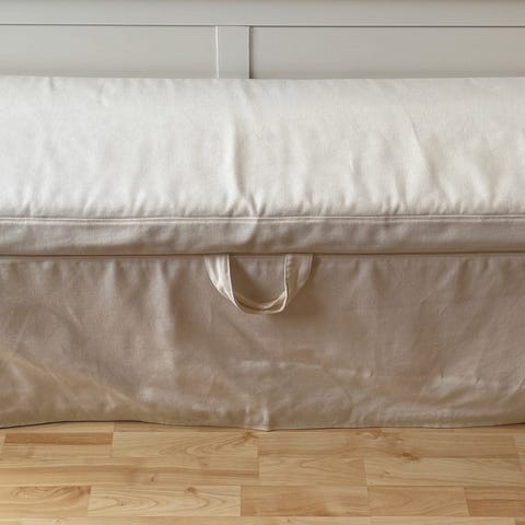 Medfølger orginalmadrassen, autentisk stoppet madrass med knapper.