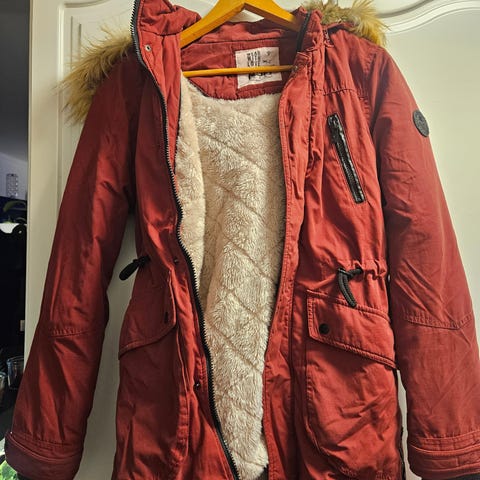 Rød jakke med hette, merke b young