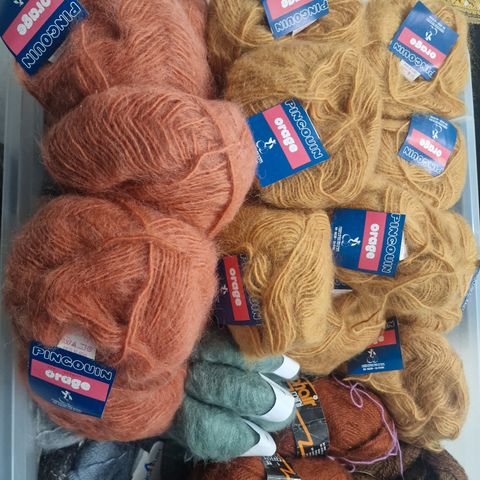 Selger også 3 hesper med lyseblått merinogarn fra Bånsull i en annen annonse. Samlet pris for alt garnet, tilsammen 2 nøster og 3 hesper 500-,