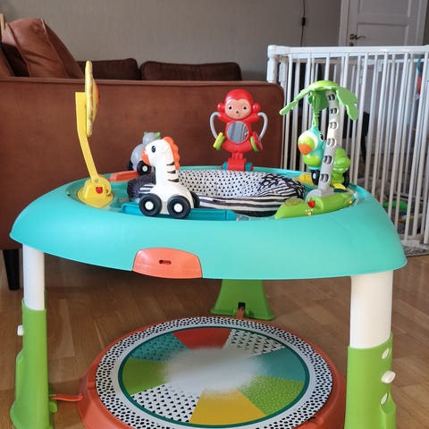 Vi kjøpte den fra babyshop. Den passer for barn fra 6 mnd. Musikken til frosken er øddelagt ellers alt er i god tilstand. Orginal pris 1300 kr