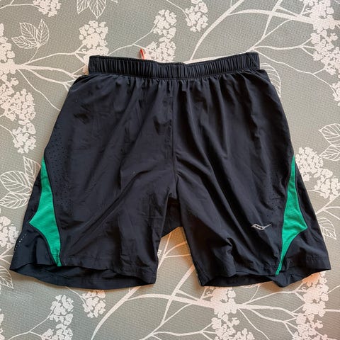 Fint brukte korte løpeshortser fortjener nytt hjem. Er tidligere blitt brukt av en sprinter, men kan også fint brukes av hvem som helst til trening.