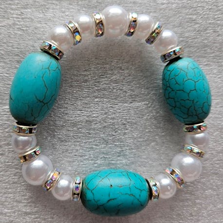 Turkise armbånd av forkjellige stein og perler.