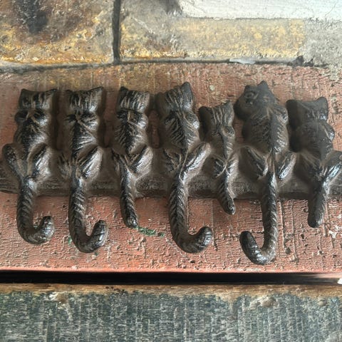 Selger henge dekorasjoner, med katte tema og vennskap.