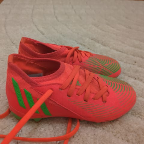 Selger pent brukt fotball sko til barna i farge hvit og oransje, str 29.