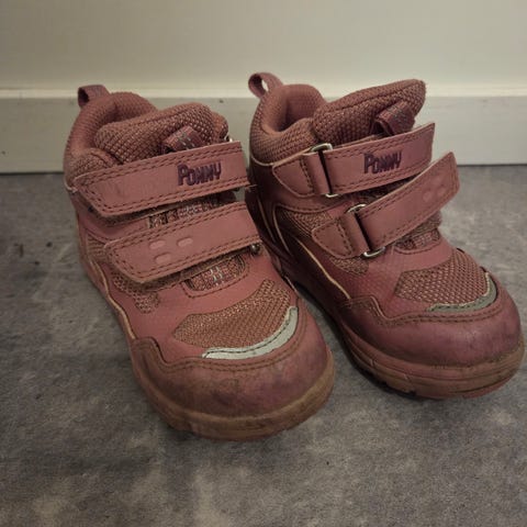 Med sympatexmembran som holder føttene tørre. Jenten vår vokste ut av denne størrelsen kort tid etter vi fikk skoene, så her er mye god bruk igjen. Lette, gode sko til våren