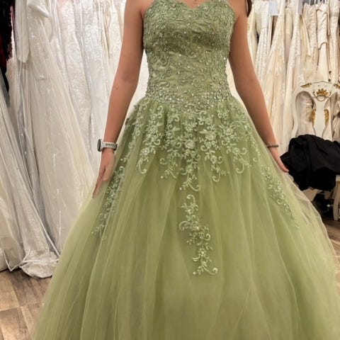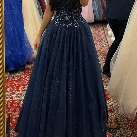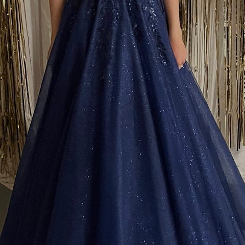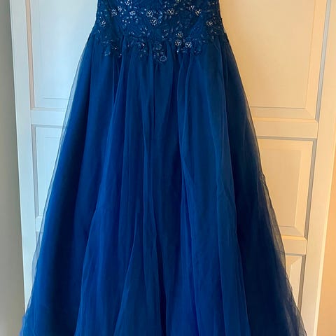 Grå strl 34 med mulighet for å knyte bak ut og inn. Sølvgrå med stener. Brukt to ganger. Pris ny 9200,- selges for kr 3200.