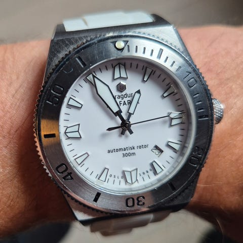 Fin klokke jeg er veldig fornøyd med, men er bare hakke for stor for mitt håndledd.