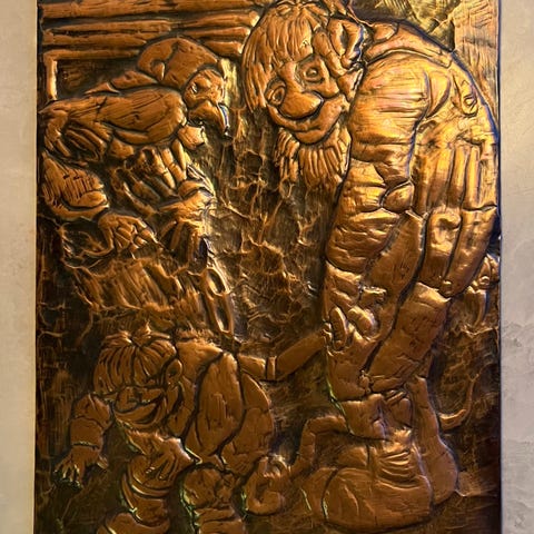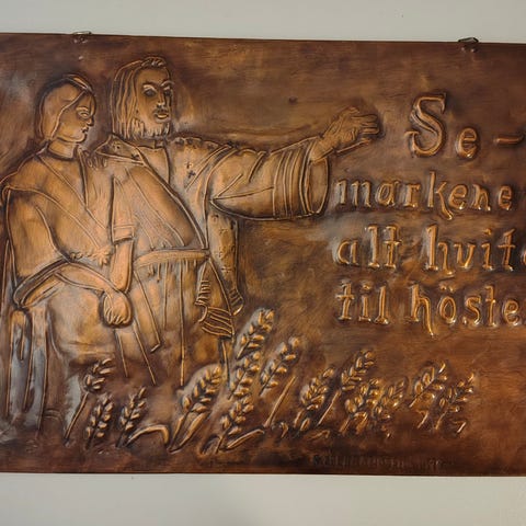 Trygve Sundby underviste i Trondheim i utforming av kobberrelieffarbeider.